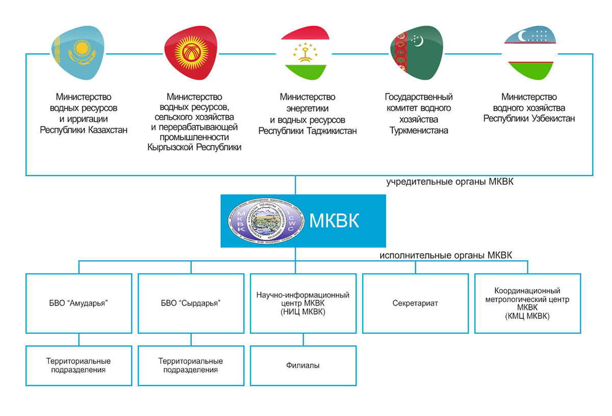 Для выполнения поставленных задач и реализации намеченных программ МКВК созданы исполнительные органы. В составе МКВК действует пять исполнительных органов — БВО «Амударья», БВО «Сырдарья», НИЦ, Секретариат и КМЦ.