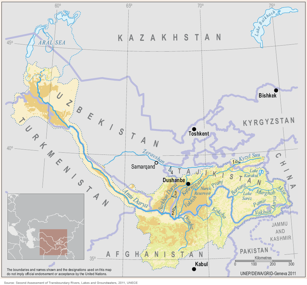 According to general agreement of the Central Asian states, the interstate water management and distribution covers only main channels of the following rivers: the Panj, the Vakhsh, the Kafirnigan, and the Amu Darya itself.