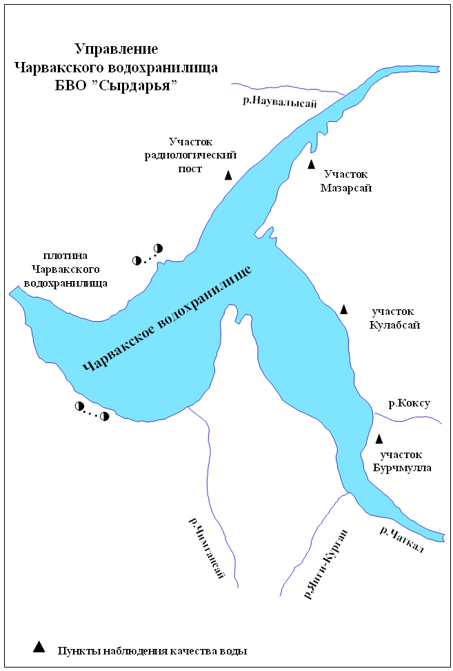 Кроме того, БВО «Сырдарья» контролирует качество сырдарьинской воды на реках Сырдарья, Карадарья, Нарын, Чирчик и в Чарвакском водохранилище.