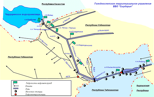 Водохозяйственный комплекс, управляемый БВО «Сырдарья», работает как в условиях пропуска нормальных, гарантированных расходов воды, так и в экстремальных условиях: при чрезвычайном маловодье и при необходимости безаварийного пропуска высоких паводков в исключительно многоводные годы.
