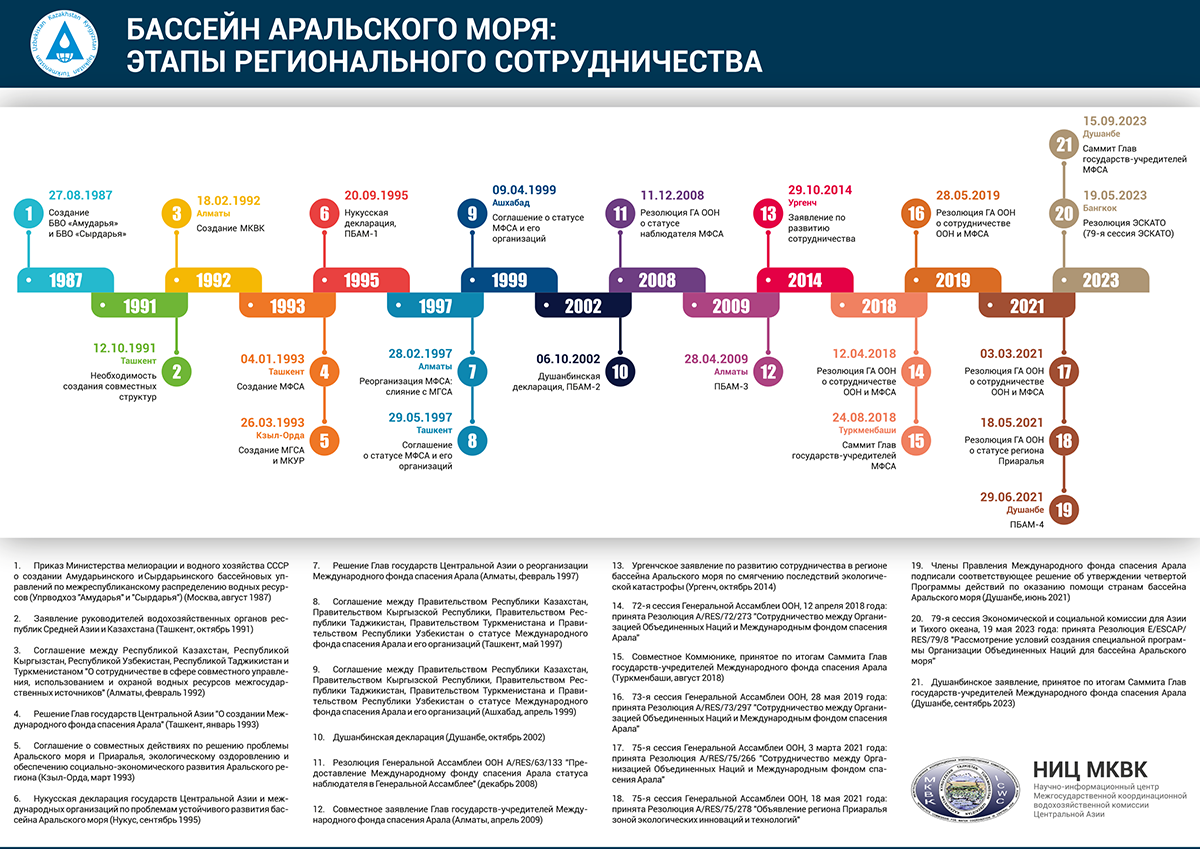 • подготовка документов и правления встреч МФСА, а также конференций и встреч Глав государства по проблемам Аральского моря.