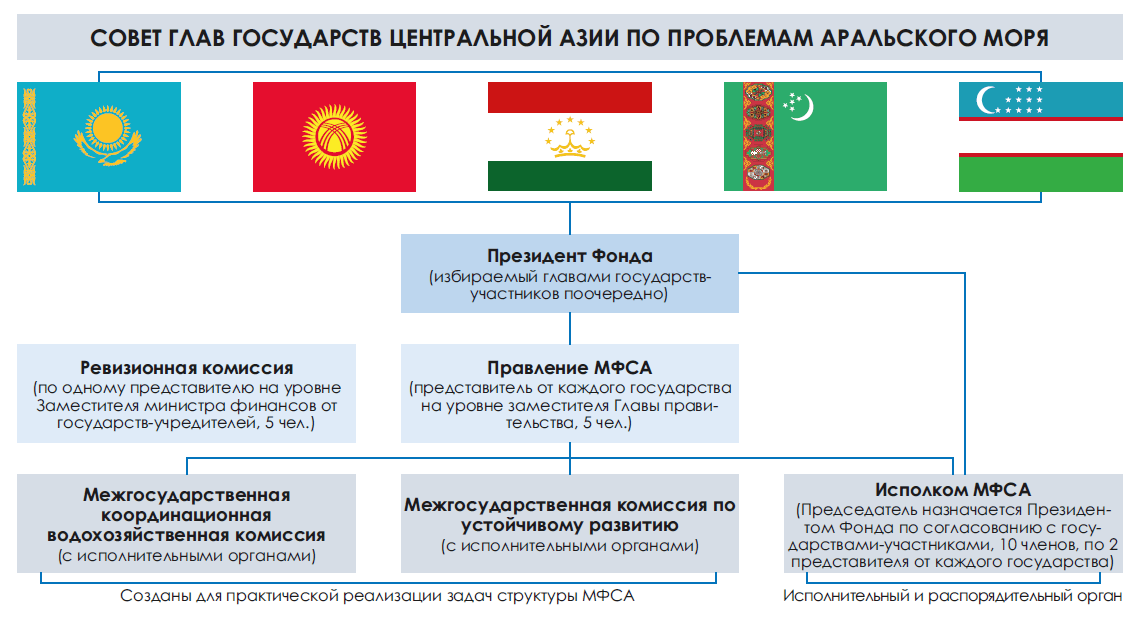 МФСА возглавляется Президентом, избираемым поочередно из числа Президентов государств Центральной Азии на срок 3 года.