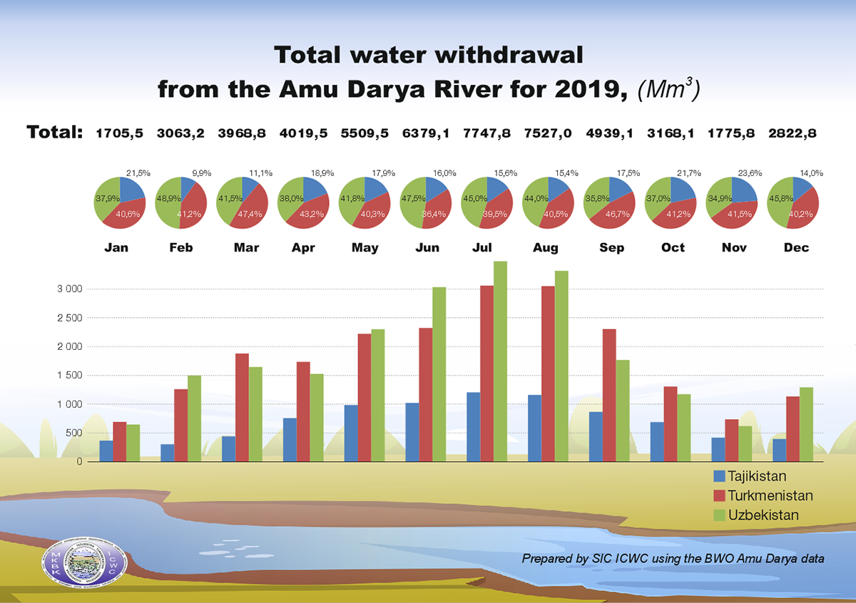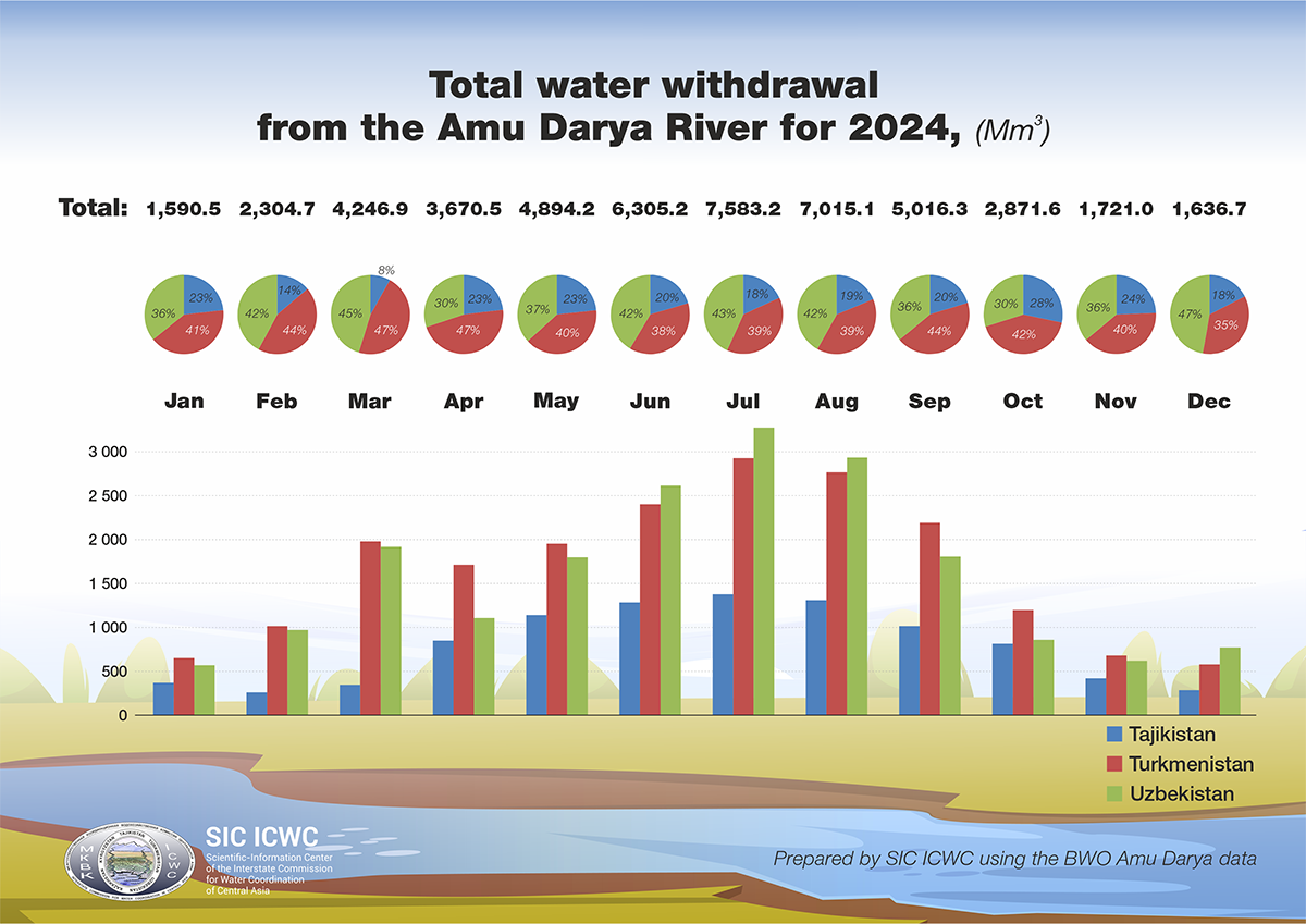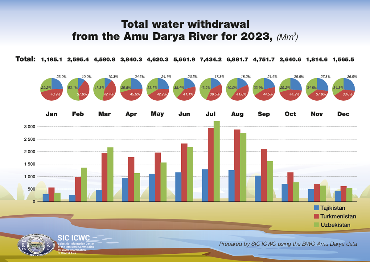 Analysis of water management situation on the Amu Darya and Syr Darya river basins for the vegetation/non-vegetation