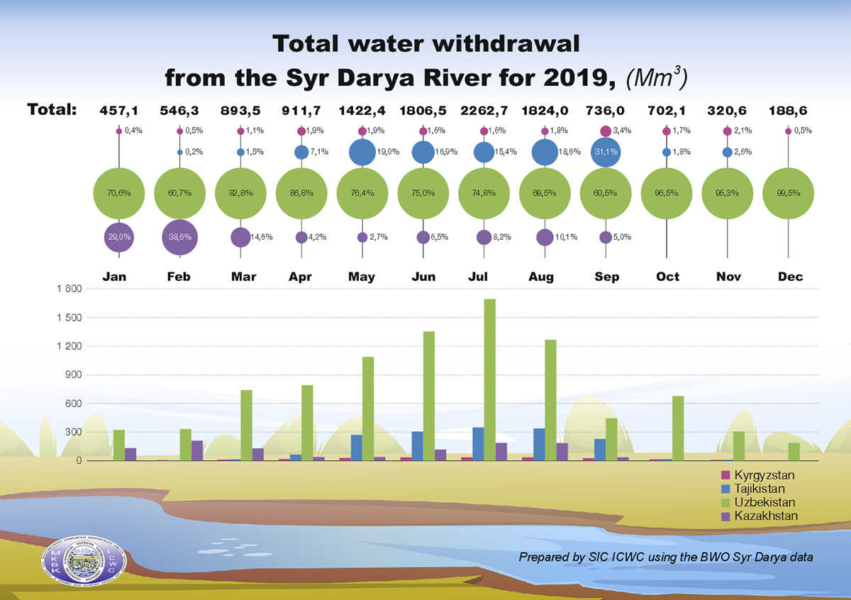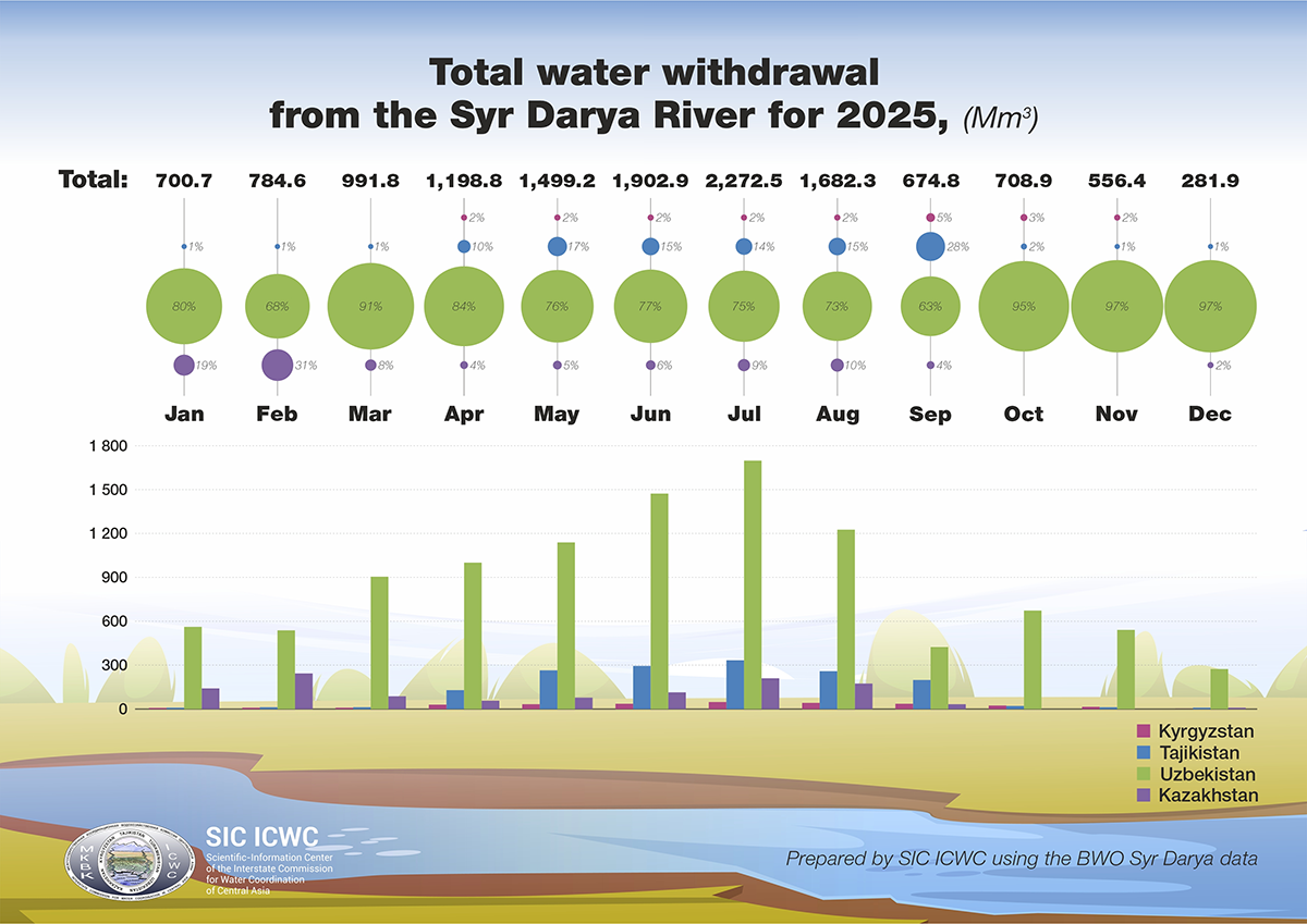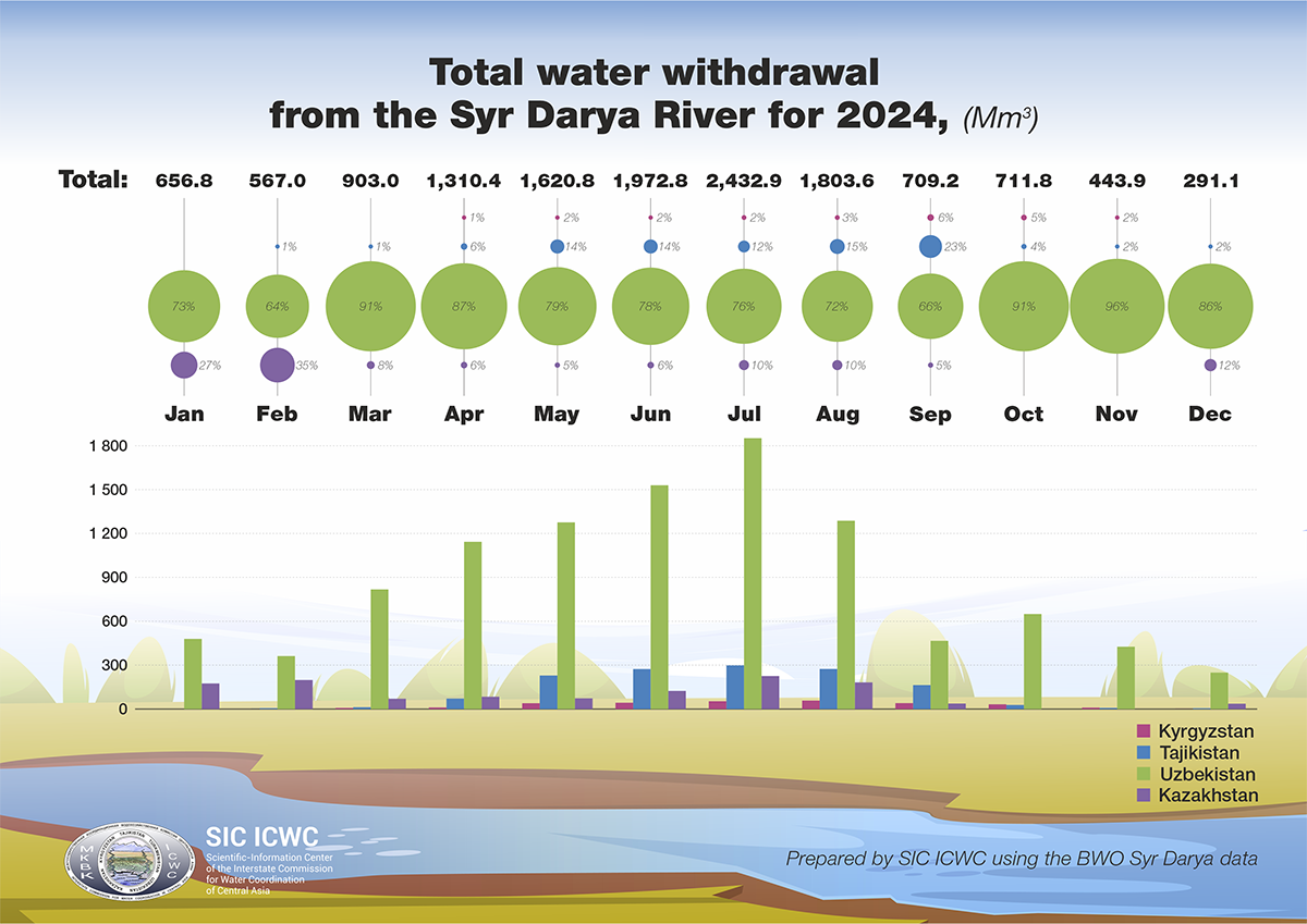 Analysis of water management situation on the Amu Darya and Syr Darya river basins for the vegetation/non-vegetation